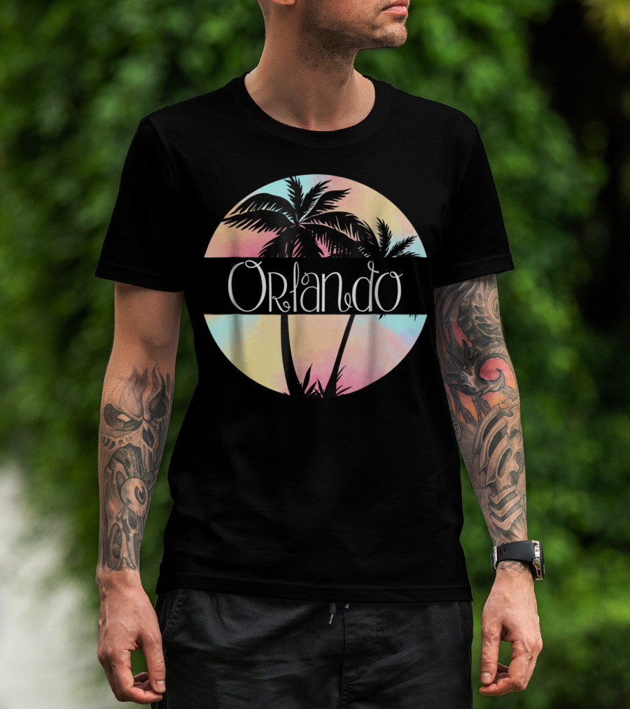 The Orlando Florida Souvenir Palm Trees Retro Sunset Circle T-shirt is designed for everyday wear and a consistent fit. Fabric is pre-shrunk ring-spun cotton with durable stitching. See the size chart below for exact measurements.