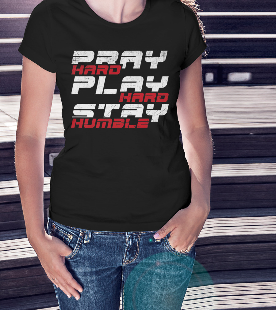 Pray Hard Play Hard Stay Humble Athletic Motivation T-Shirt