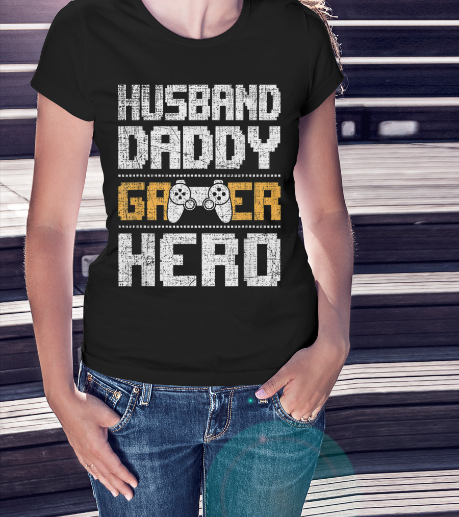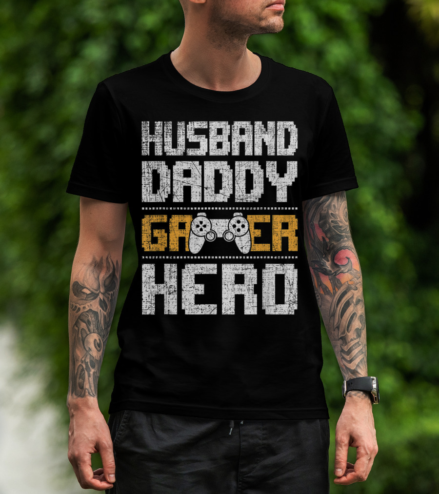 Husband Daddy Gamer Hero With Gaming Controller T-Shirt
