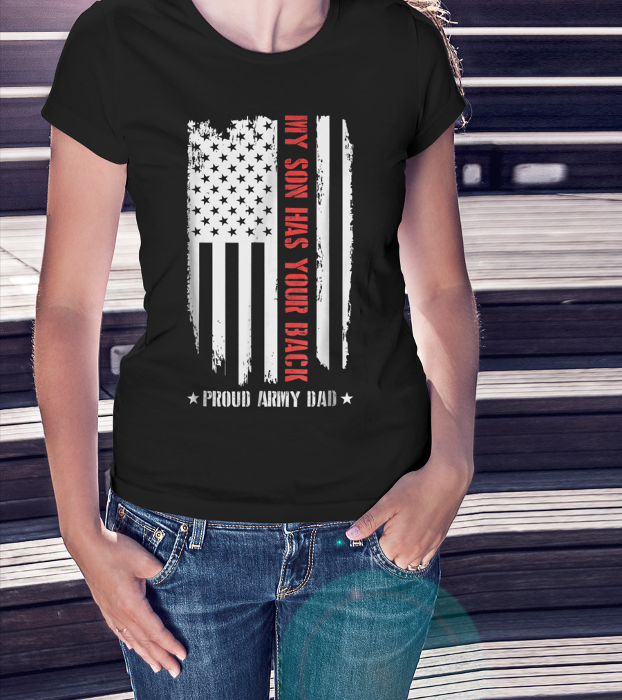Proud Army Dad My Son Has Your Back American Flag T-Shirt