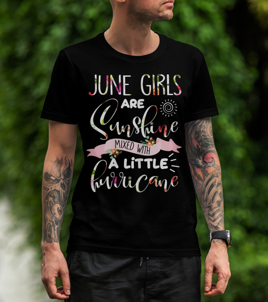 June Girls Are Sunshine Mixed With A Little Hurricane Sun Spiral Floral Banner T-Shirt