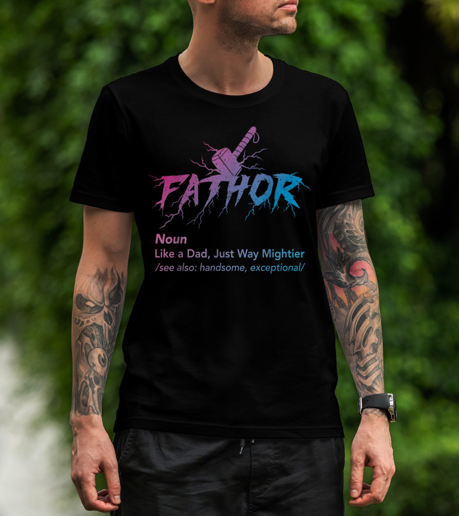 Fathor Noun Like A Dad Just Way Mightier Handsome Exceptional Hammer Lightning T-Shirt