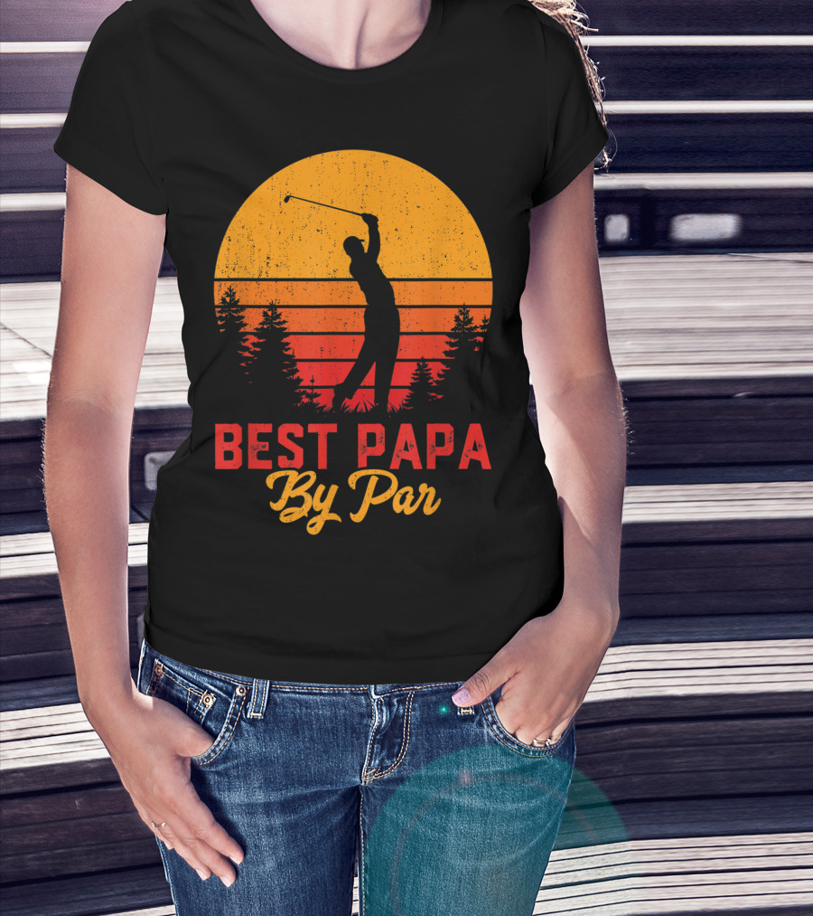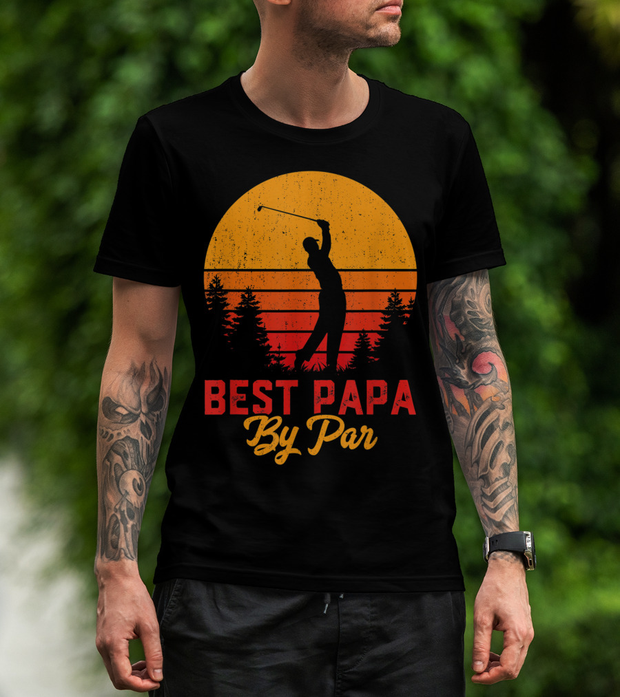 Mens Funny Father's Day Best Papa By Par Golf Silhouette Sunset T-Shirt