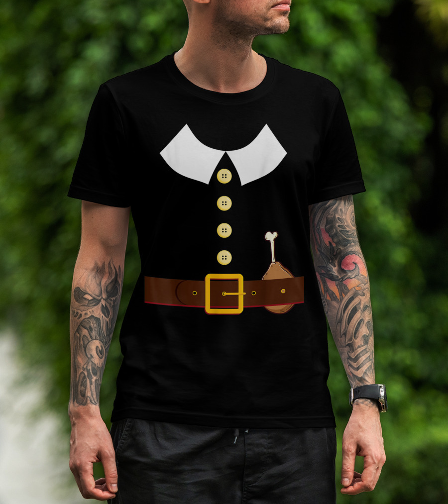 Pilgrim Costume Black Collar Buttons Belt Chicken Leg Colonist T-Shirt