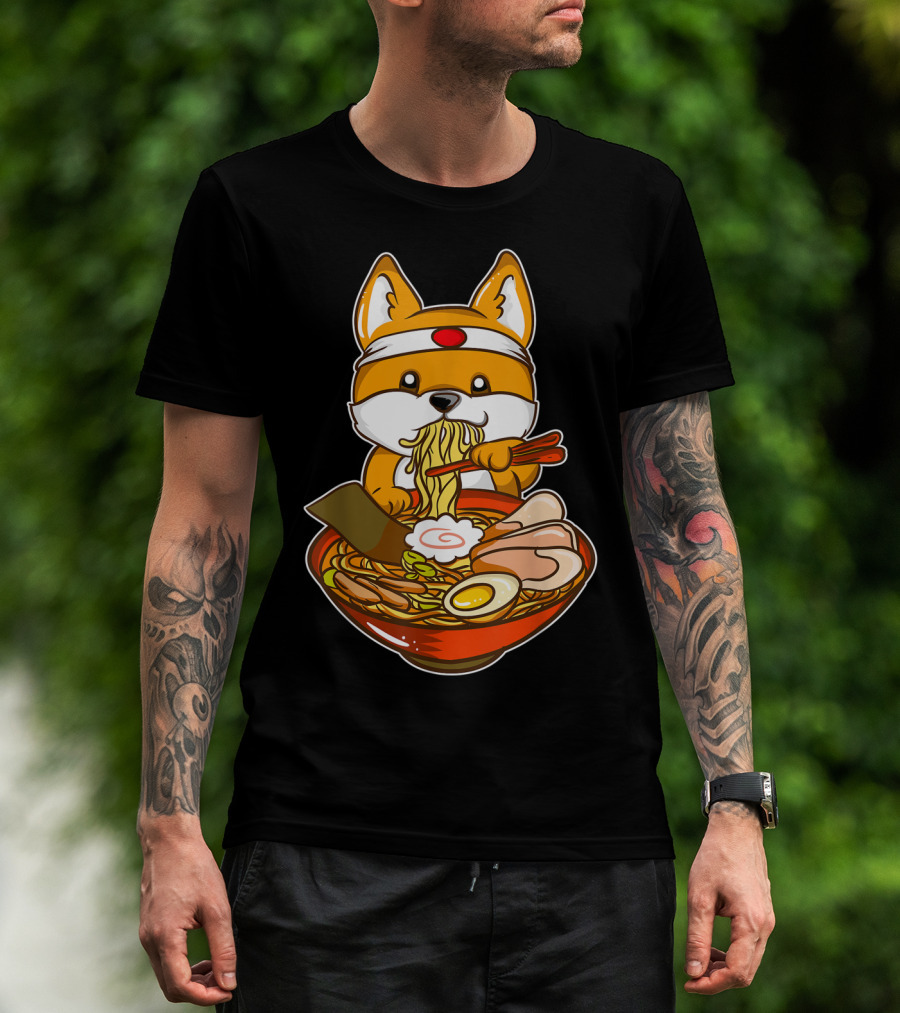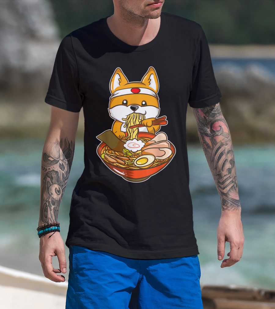 Kawaii Japanese Anime Shiba Inu Enjoying Ramen Bowl T-Shirt