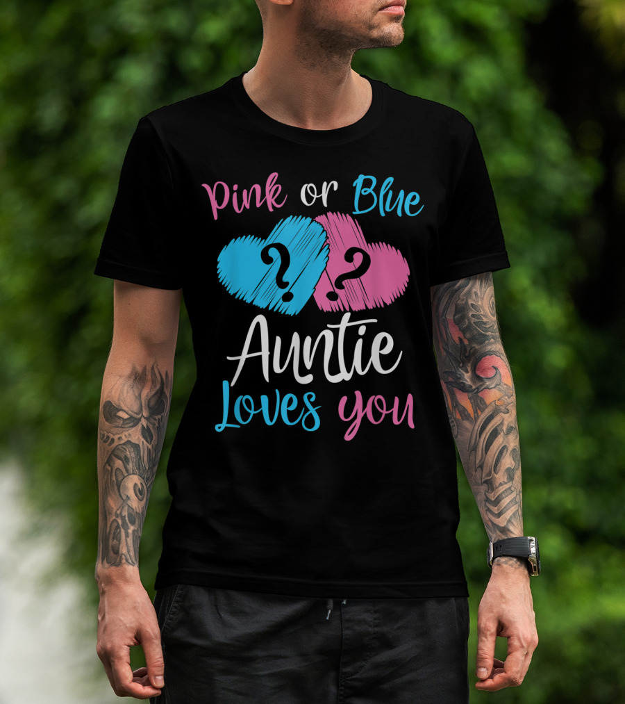 Pink Or Blue Auntie Loves You Hearts Gender Reveal T-Shirt