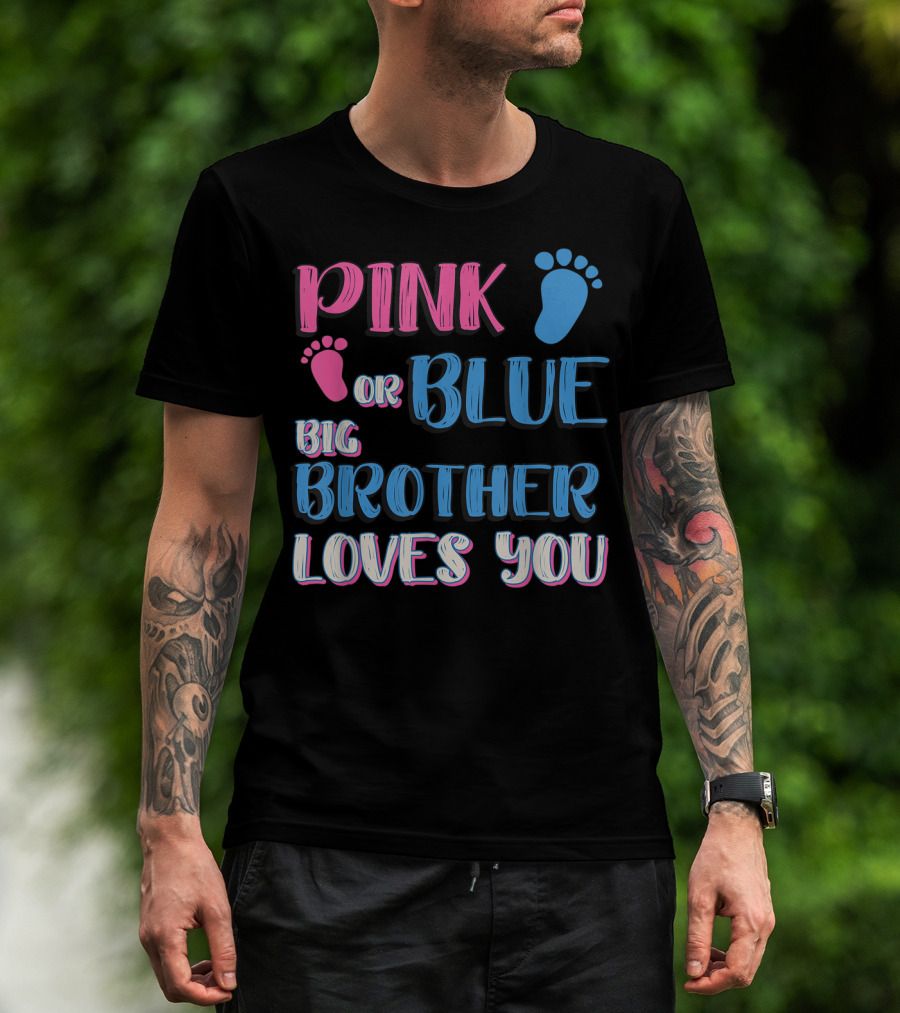 The Pink or Blue Big Brother Loves You T-shirt is designed for everyday wear and a consistent fit. Fabric is pre-shrunk ring-spun cotton with durable stitching. See the size chart below for exact measurements.