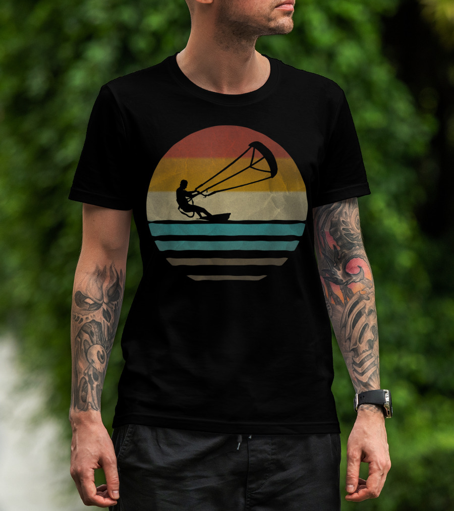 Kiteboarding Vintage Distre Sunset Retro Stripes T-Shirt