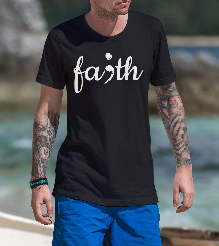 Mens Mental Health Awareness With Faith Semicolon T-Shirt