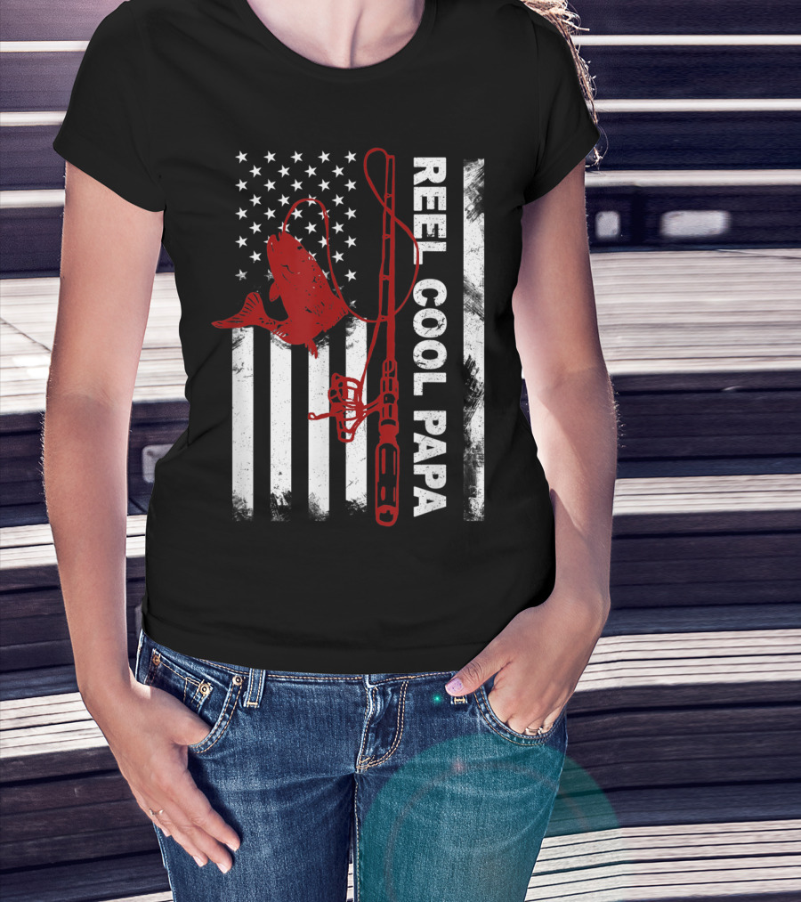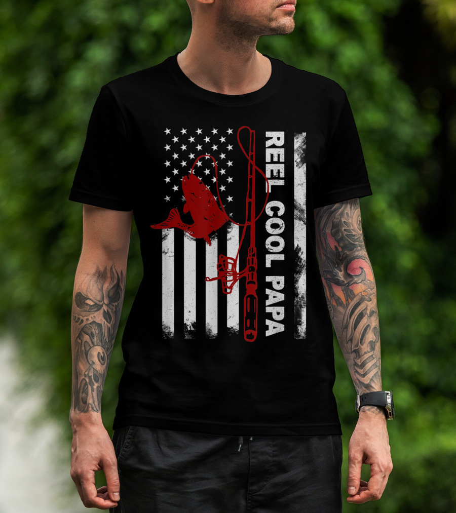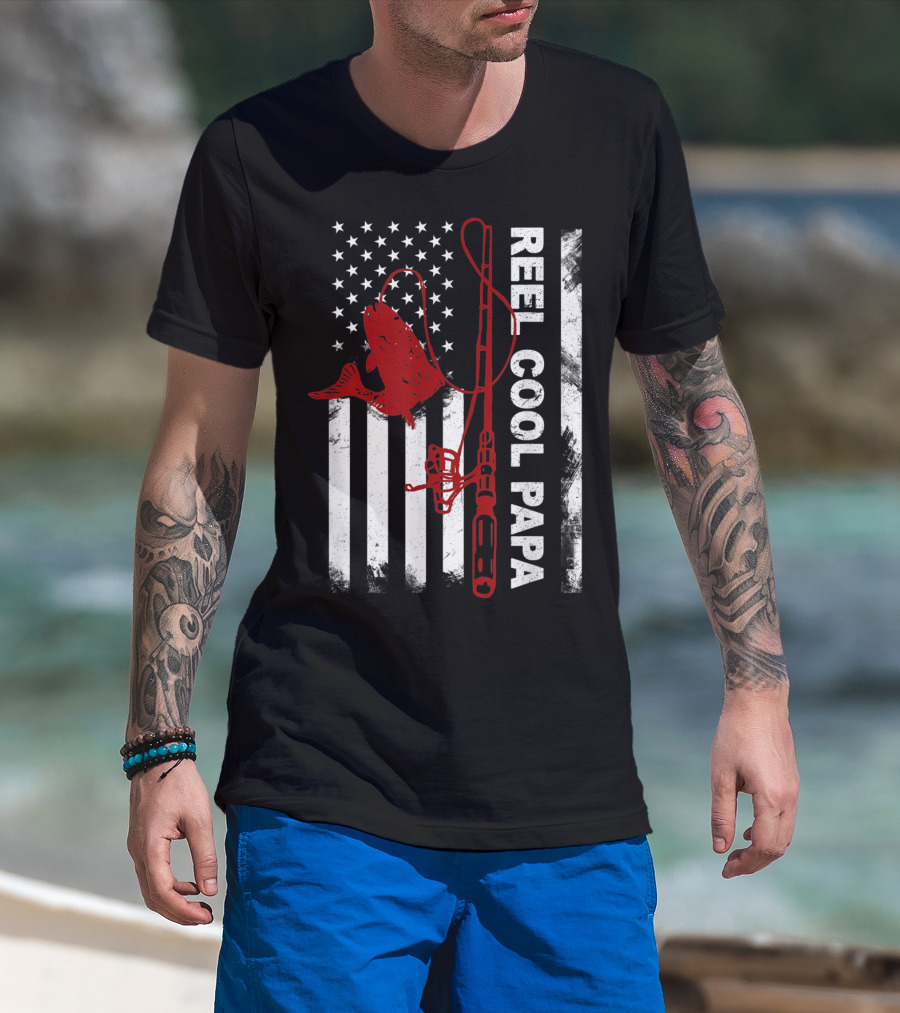 Reel Cool Papa American Flag Fishing Rod And Fish T-Shirt