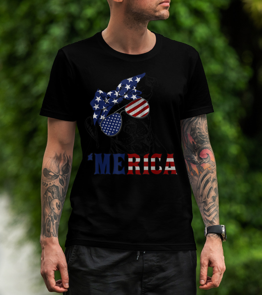 'Merica Patriotic Stars And Stripes Pitbull With USA Flag Glasses T-Shirt