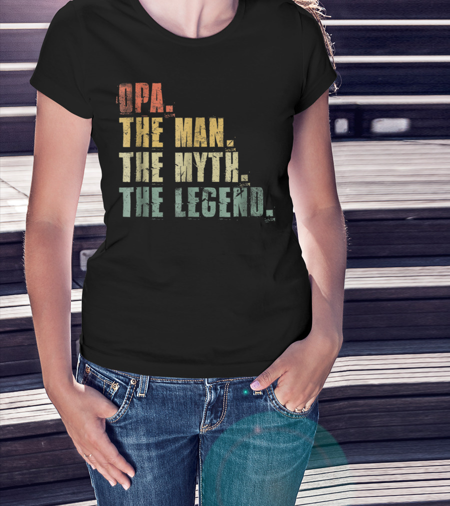 The Opa The Man The Myth The Legend Mens Funny Fat T-shirt is designed for everyday wear and a consistent fit. Fabric is pre-shrunk ring-spun cotton with durable stitching. See the size chart below for exact measurements.