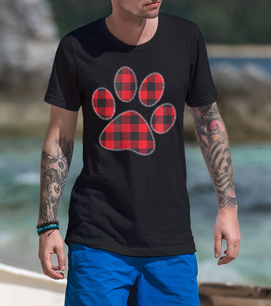 Red Plaid Buffalo Check Paw Print Family Matching T-Shirt