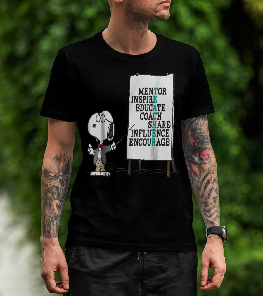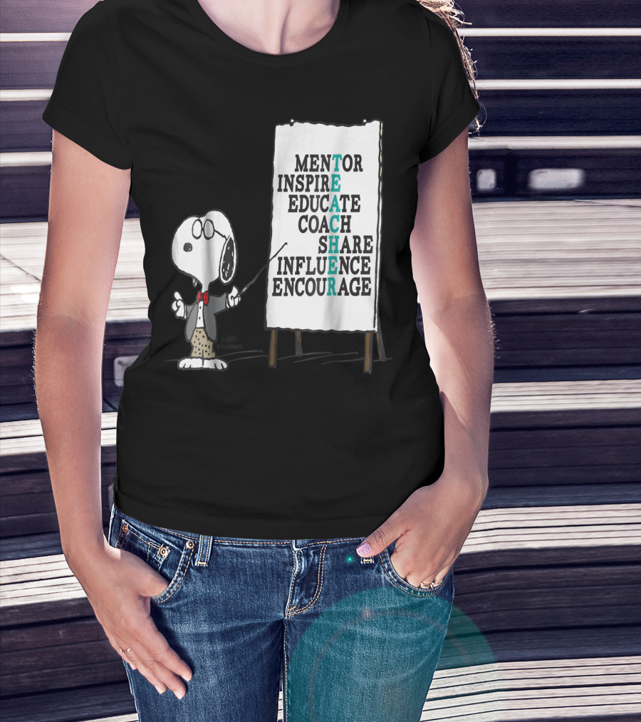Peanuts Snoopy Teacher Mentor Inspire Educate Coach Share Influence Encourage T-Shirt
