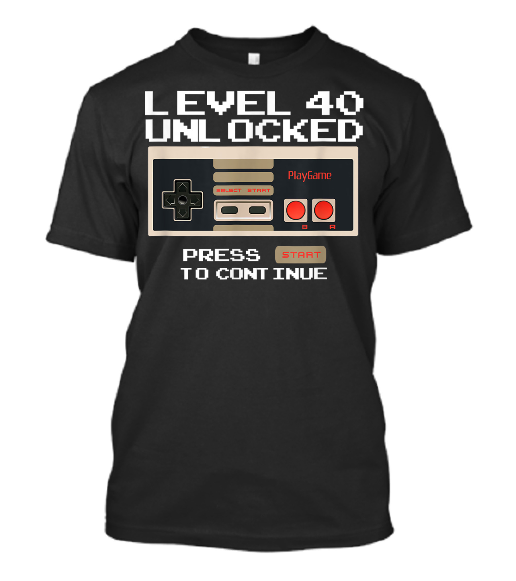 Level 40 Unlocked Press Start To Continue PlayGame Controller Retro Gamer T-Shirt