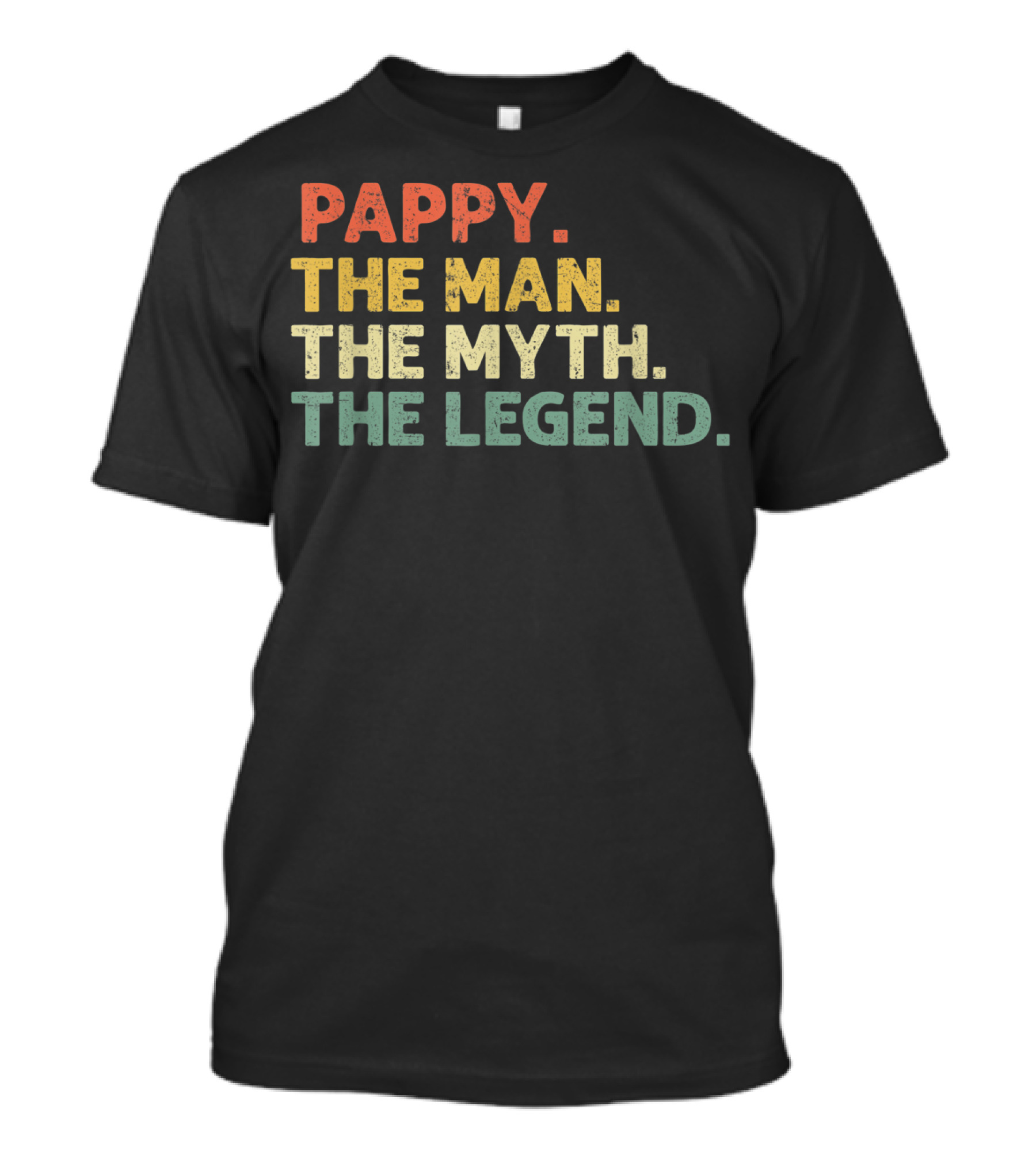 The Pappy The Man The Myth The Legend Vintage Style Mens T-shirt is designed for everyday wear and a consistent fit. Fabric is pre-shrunk ring-spun cotton with durable stitching. See the size chart below for exact measurements.