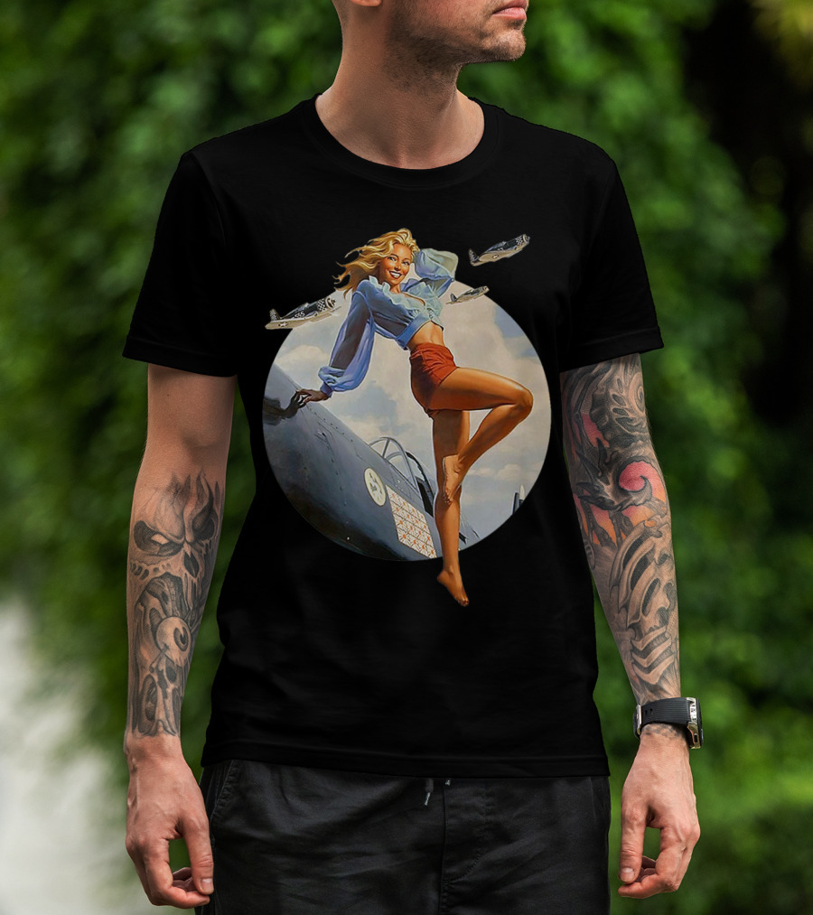 Pin Up Blonde With WWII 40s Air Force Plane And Iconic T-Shirt