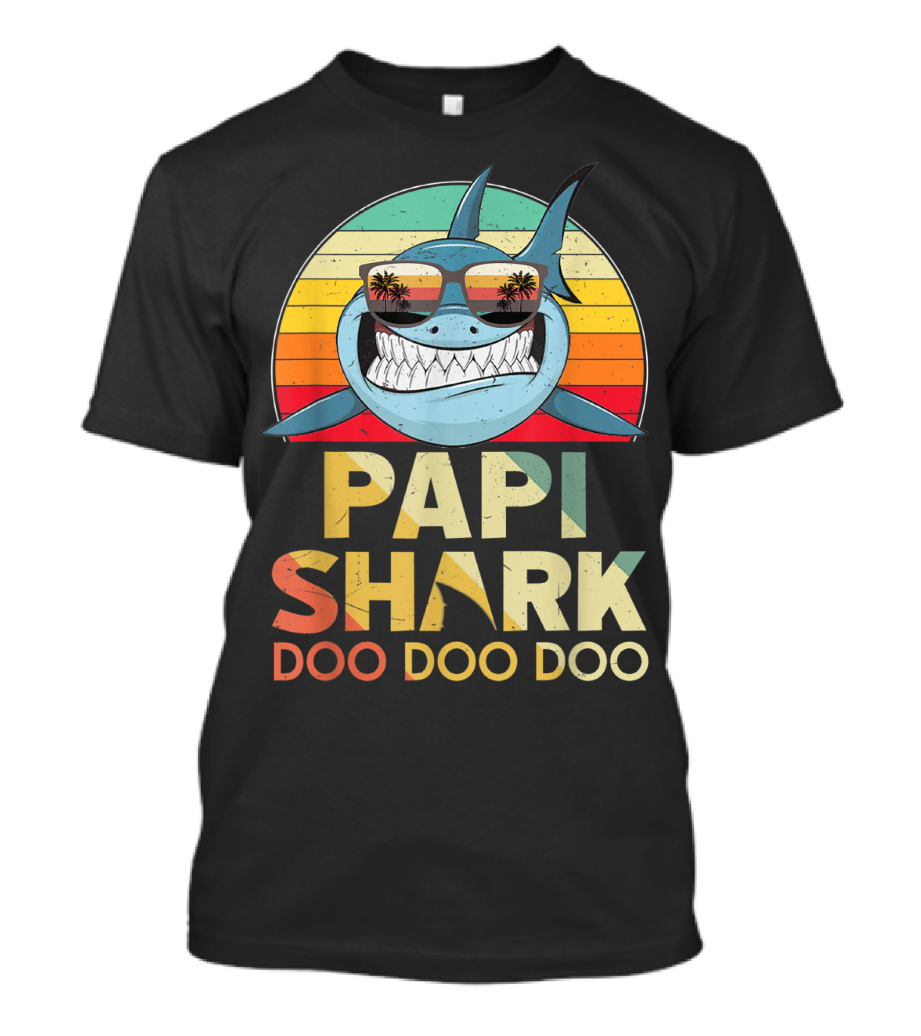 The Papi Shark Doo Doo Doo Retro Vintage T-shirt is designed for everyday wear and a consistent fit. Fabric is pre-shrunk ring-spun cotton with durable stitching. See the size chart below for exact measurements.