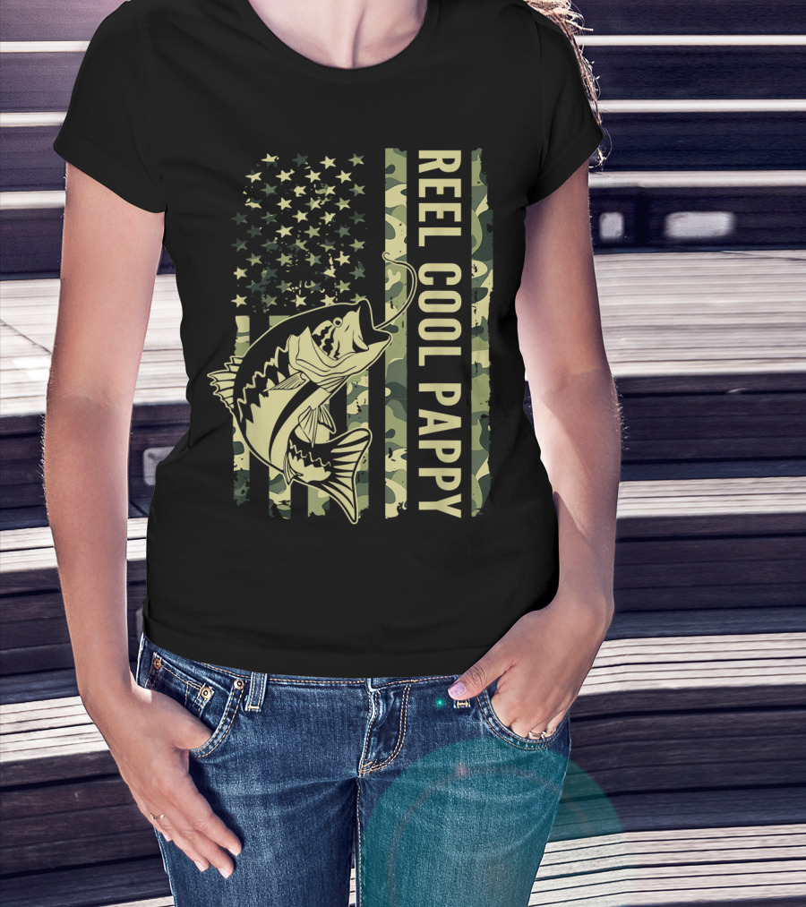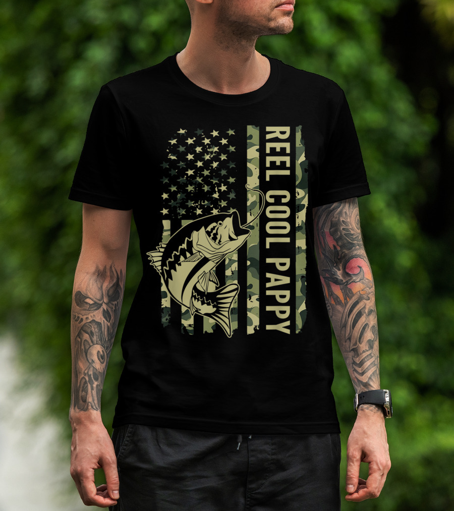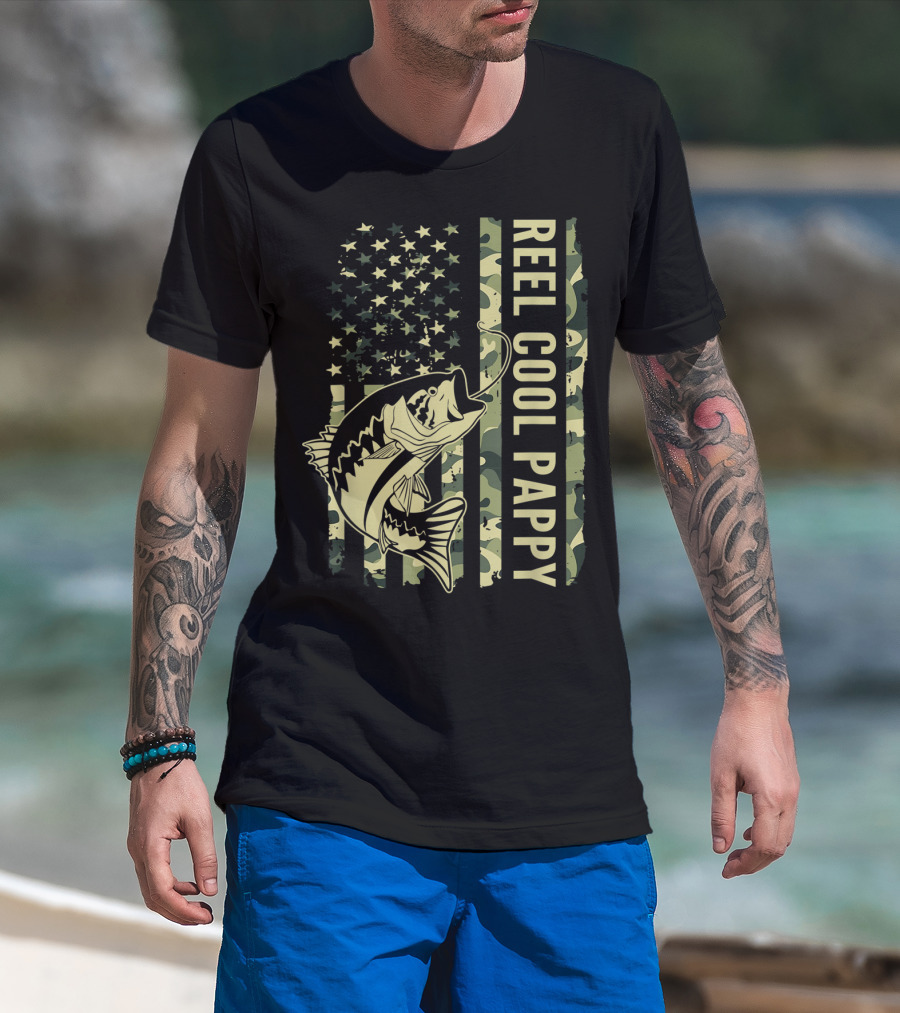 Mens Reel Cool Pappy Camouflage American Flag Fish T-Shirt