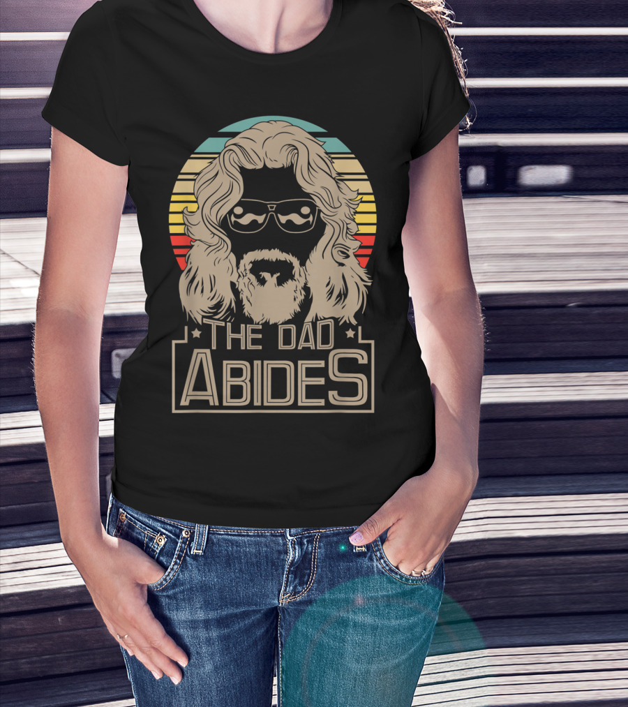 Mens The Dad Abides Retro Style Rainbow Circle Sunglasses And Long Hair T-Shirt