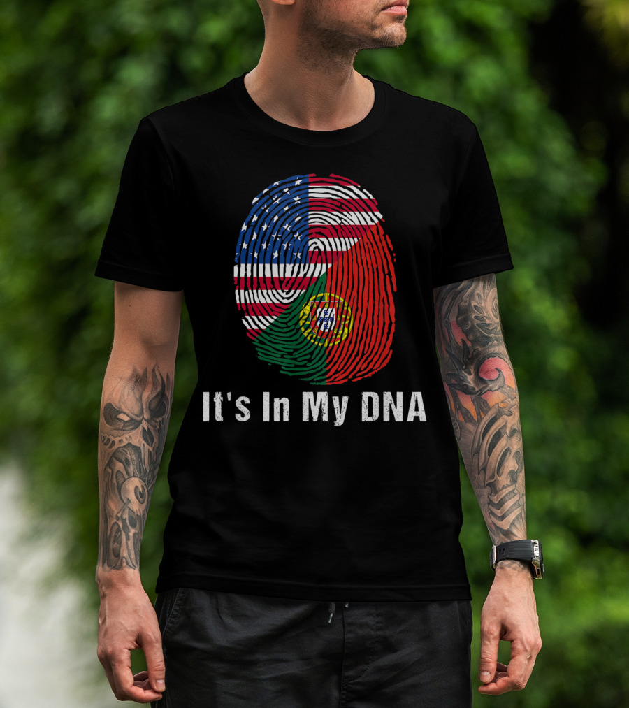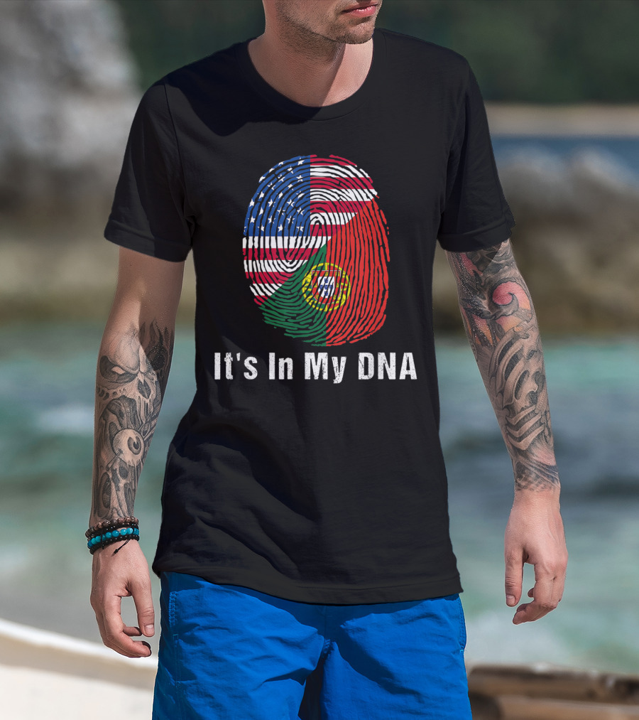 Portugal Flag USA Flag It's In My DNA Fingerprint T-Shirt