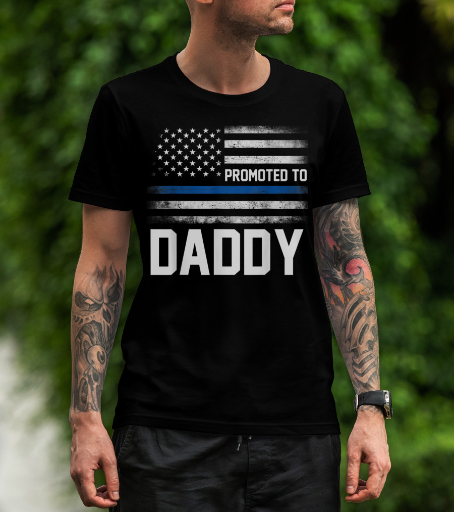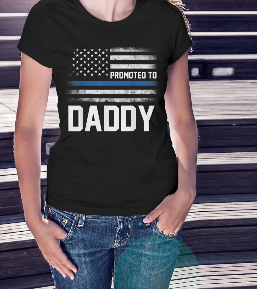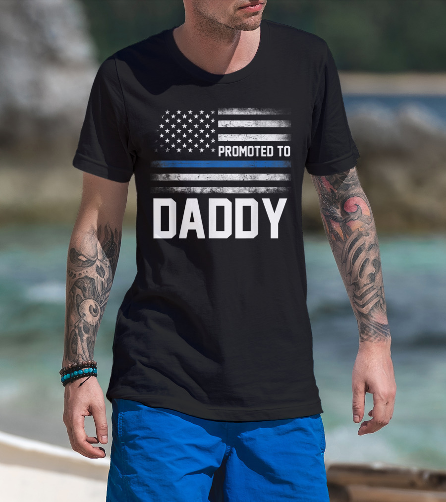 Promoted To Daddy American Flag Thin Blue Line Fathers T-Shirt