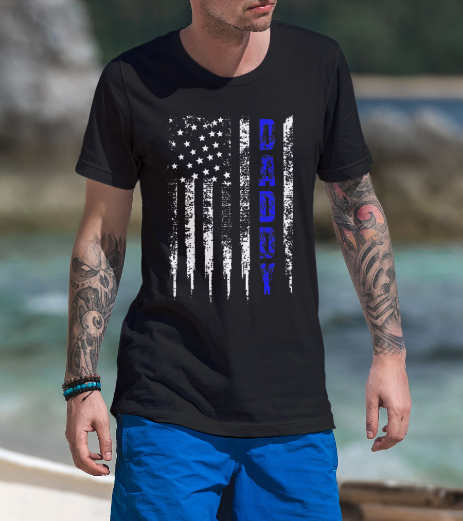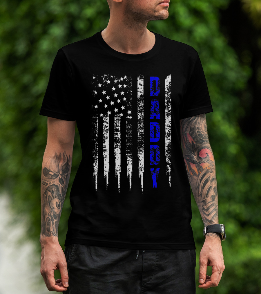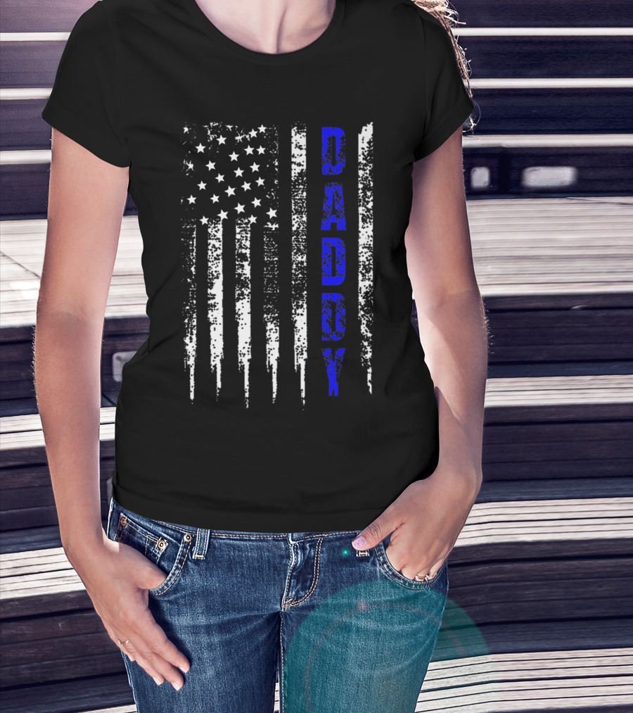 The Police Daddy Blue Line USA Flag T-shirt is designed for everyday wear and a consistent fit. Fabric is pre-shrunk ring-spun cotton with durable stitching. See the size chart below for exact measurements.