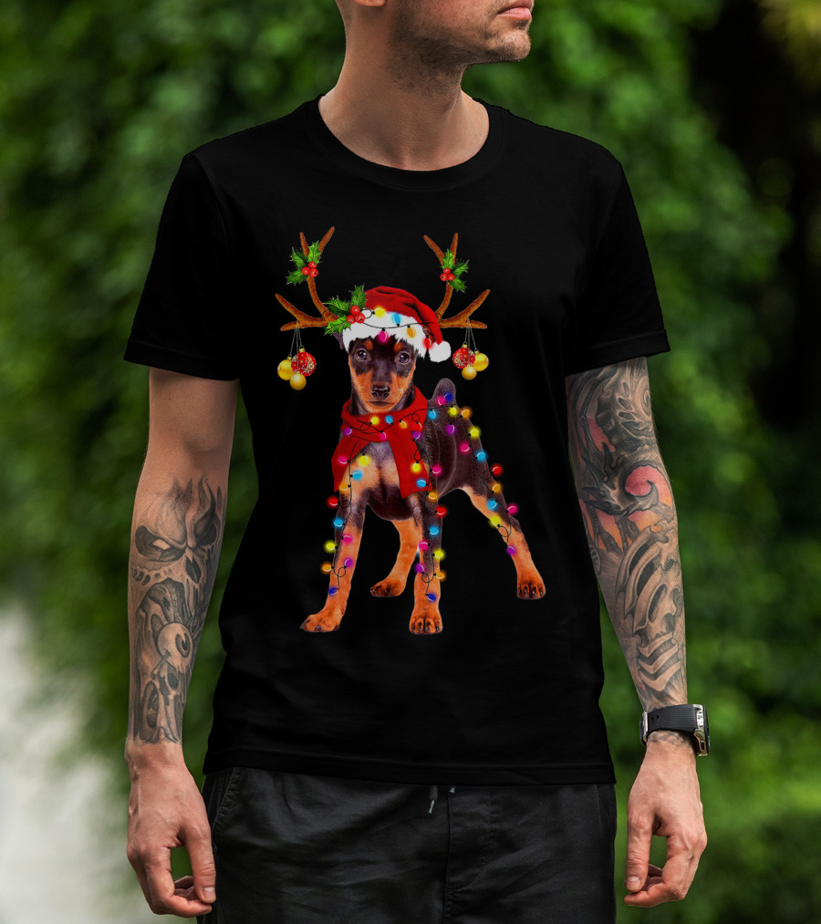 Santa Min Pin Reindeer Festive Lights T-Shirt