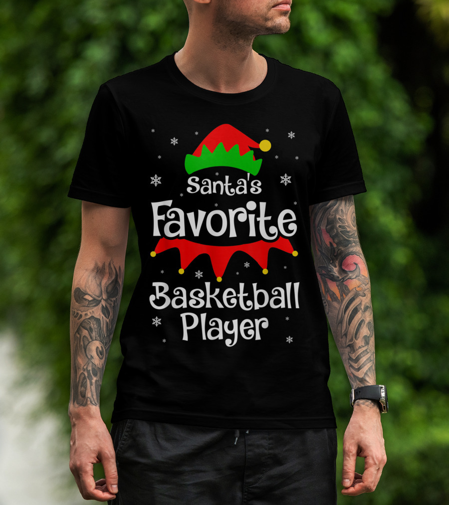 The Santa's Favorite Basketball Player Christmas Snowflakes Elf Hat T-shirt is designed for everyday wear and a consistent fit. Fabric is pre-shrunk ring-spun cotton with durable stitching. See the size chart below for exact measurements.
