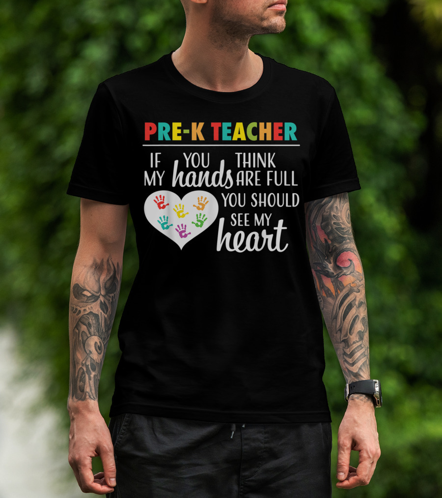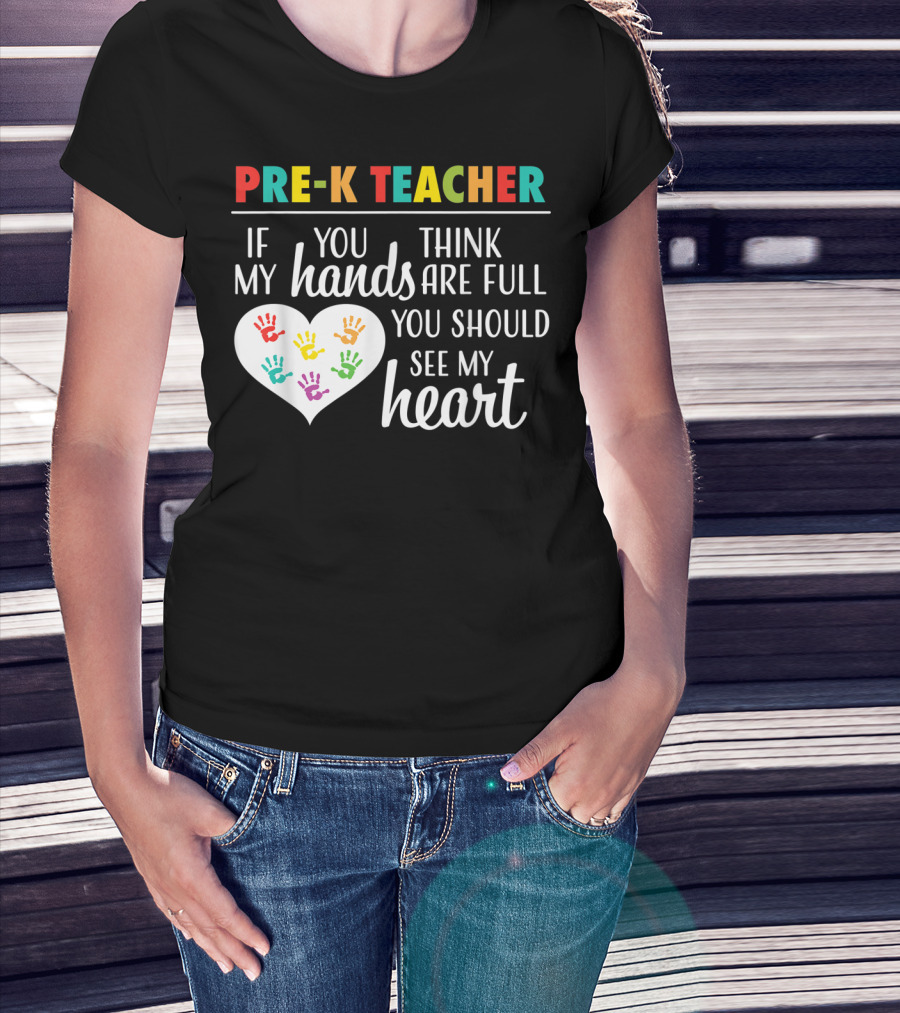 Pre K Teacher If You Think My Hands Are Full You Should See My Heart T-Shirt