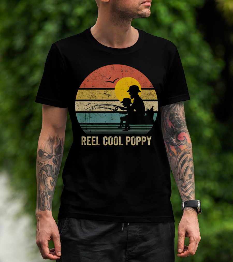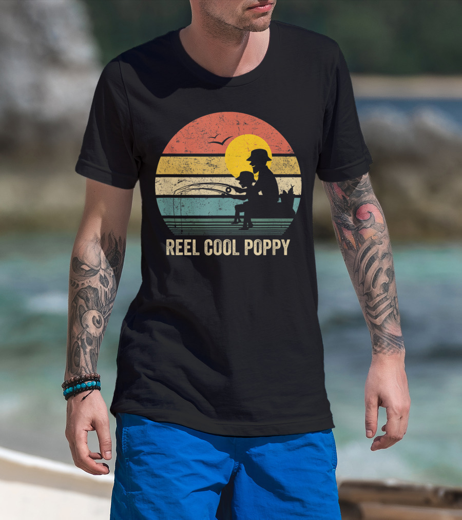 Reel Cool Poppy Vintage Fisherman Father's Retro Style Sun T-Shirt