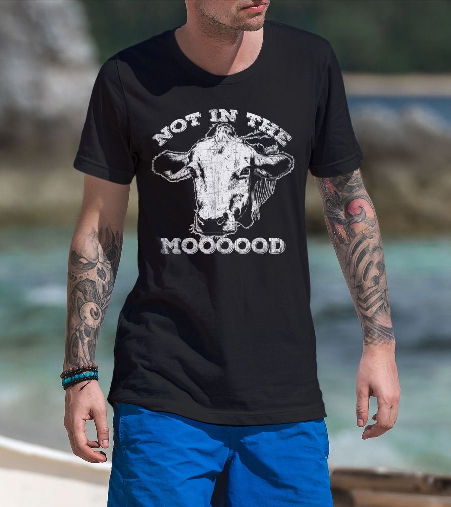 The Not In The Mood Funny Cow Moooood T-shirt is designed for everyday wear and a consistent fit. Fabric is pre-shrunk ring-spun cotton with durable stitching. See the size chart below for exact measurements.