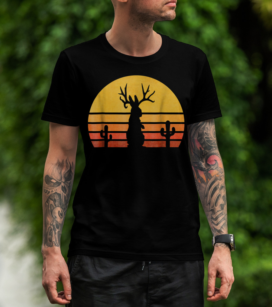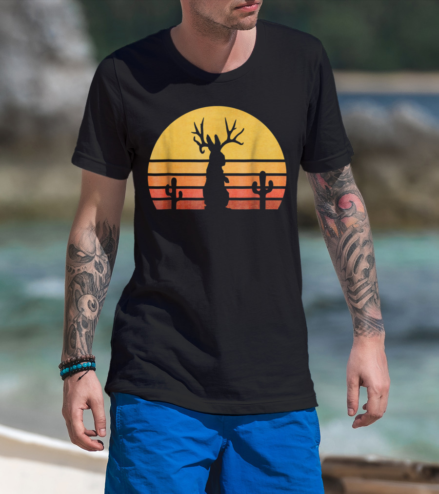 Retro Eighties Sunset Jackalope Silhouette With Cactus Vintage Cryptid T-Shirt