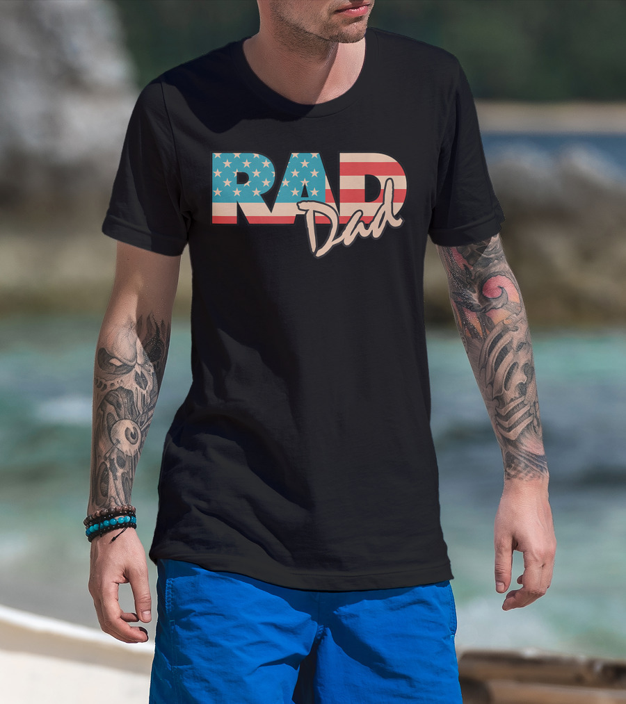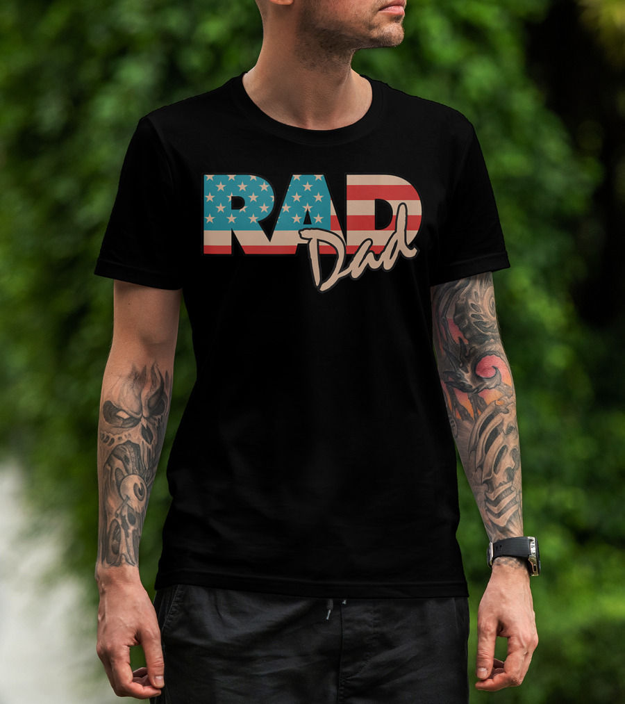 The Rad Dad Vintage 1990's American Flag T-shirt is designed for everyday wear and a consistent fit. Fabric is pre-shrunk ring-spun cotton with durable stitching. See the size chart below for exact measurements.