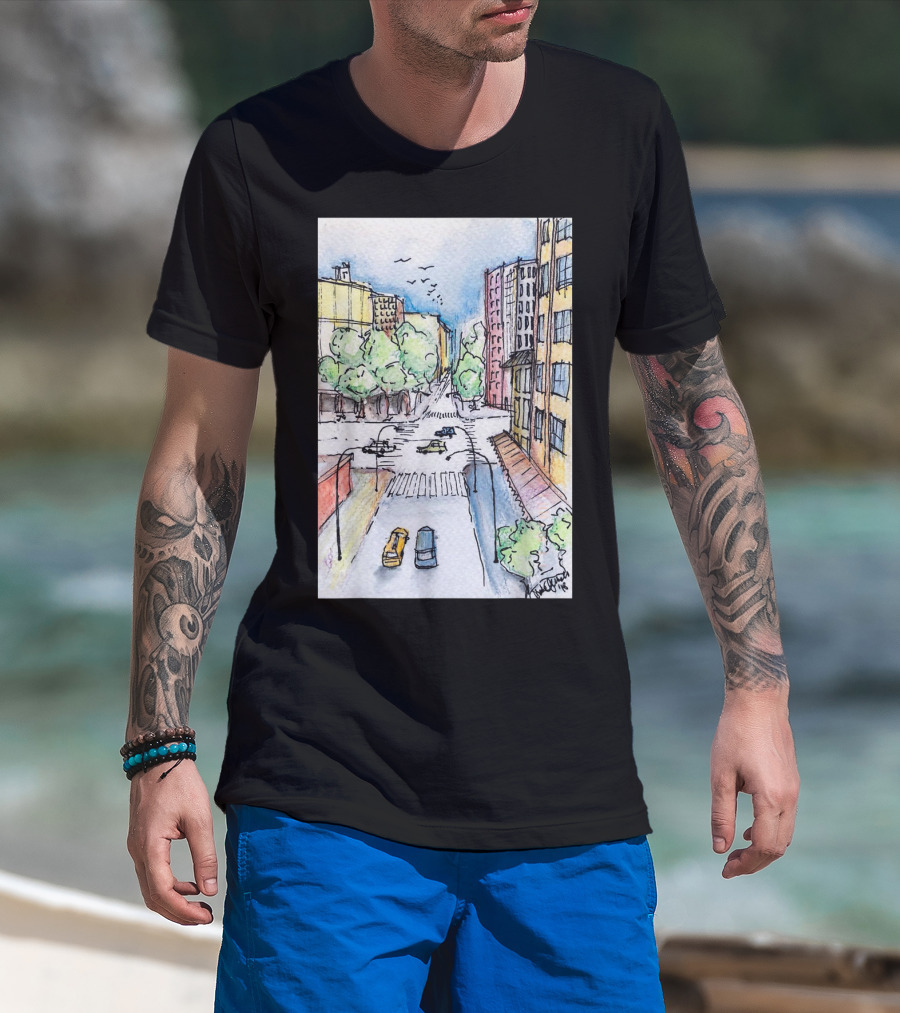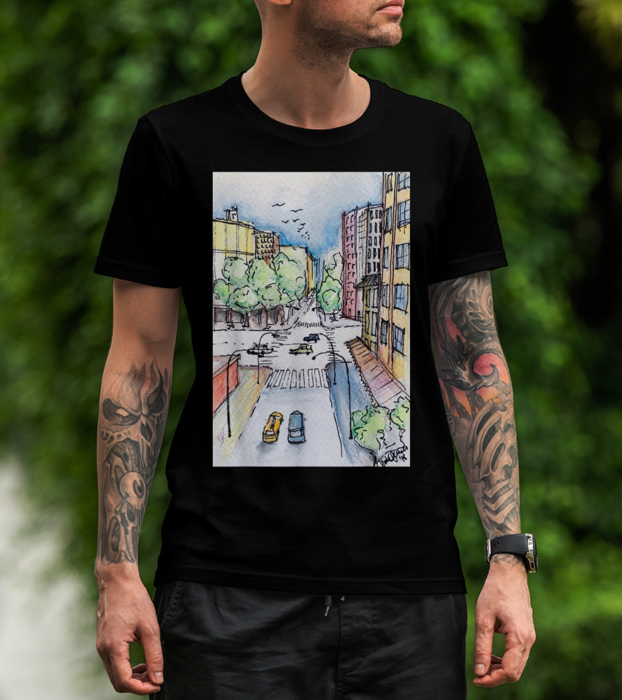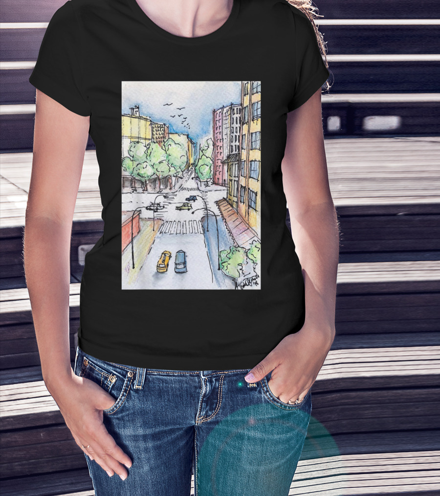 How much will this New York City Urban Street View from the Highline with Cars and Buildings shirt shrink?