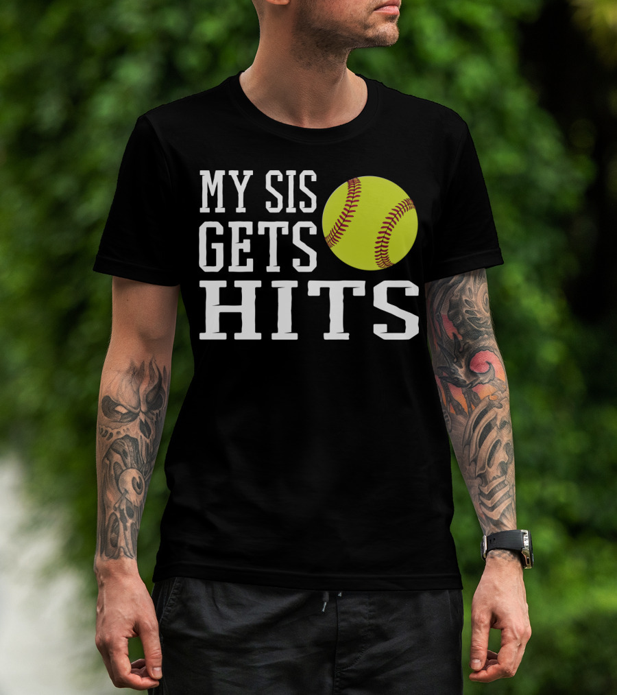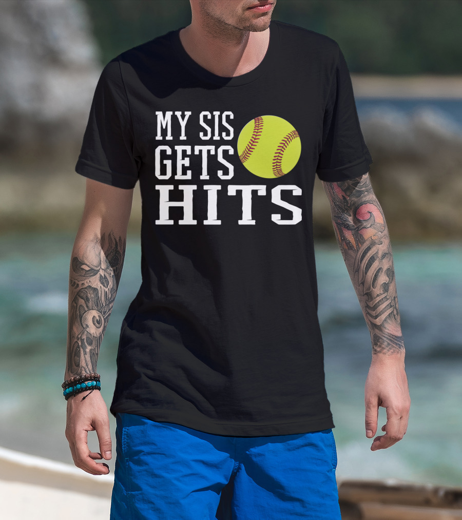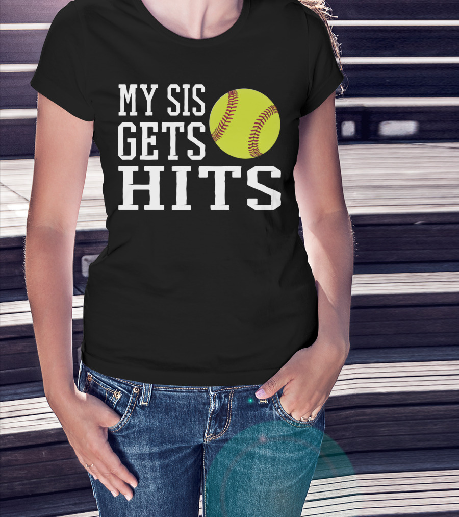 My Sis Gets Hits Softball Brother Sister Bond T-Shirt
