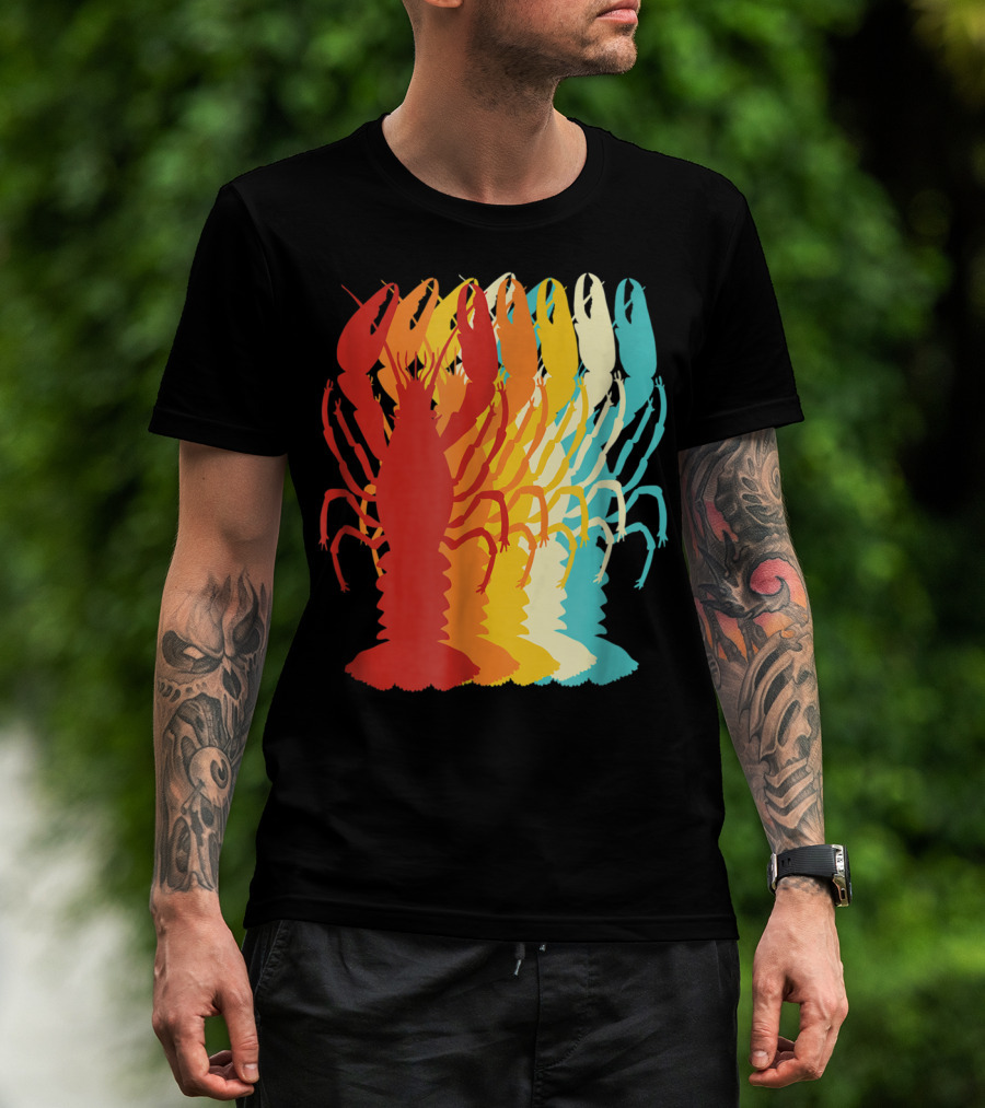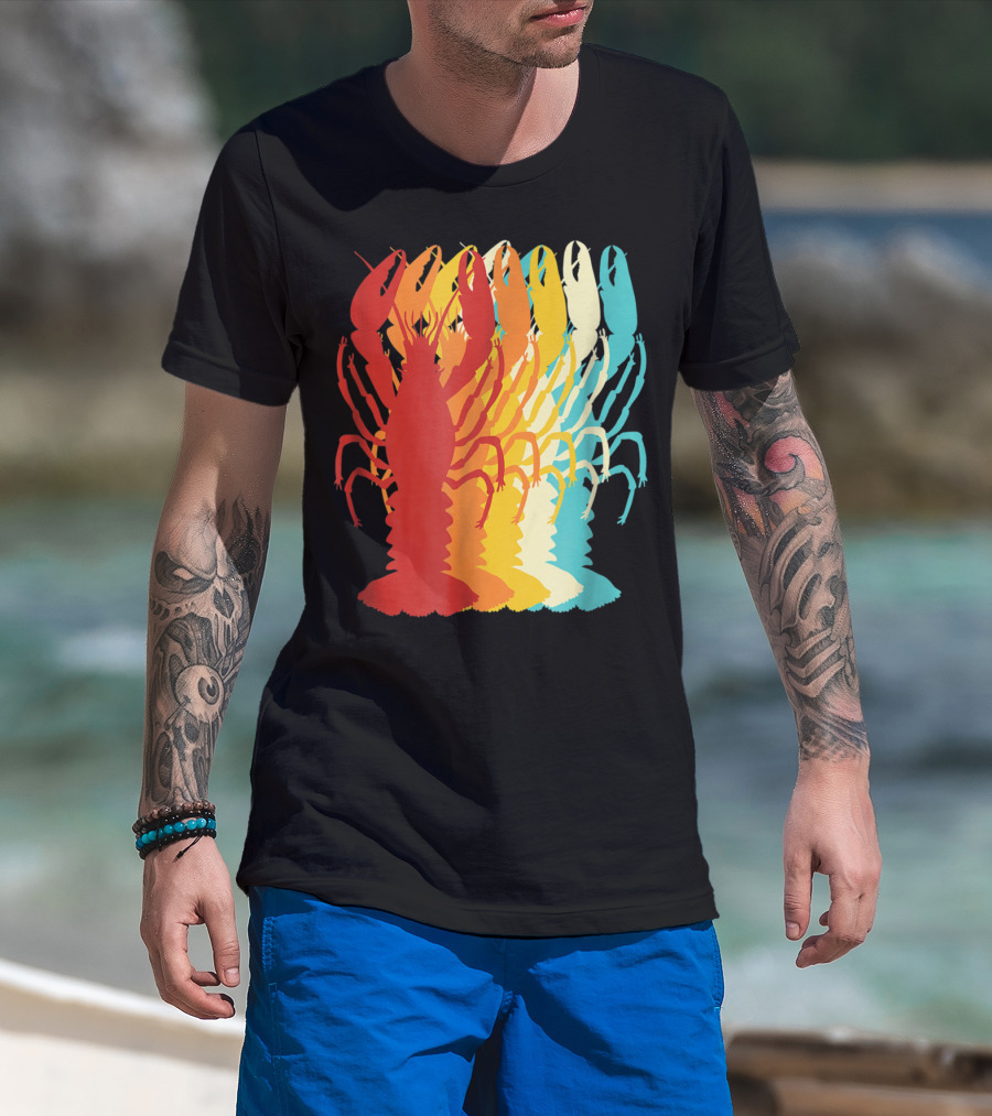 Retro Crawfish Rainbow Cajun Crayfish Novelty T-Shirt