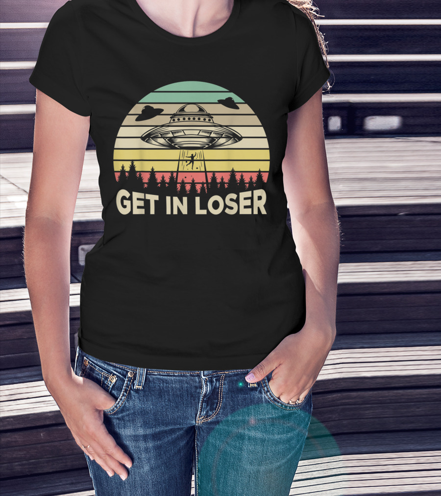 Get In Loser Retro Vintage UFO Alien Scene T-Shirt