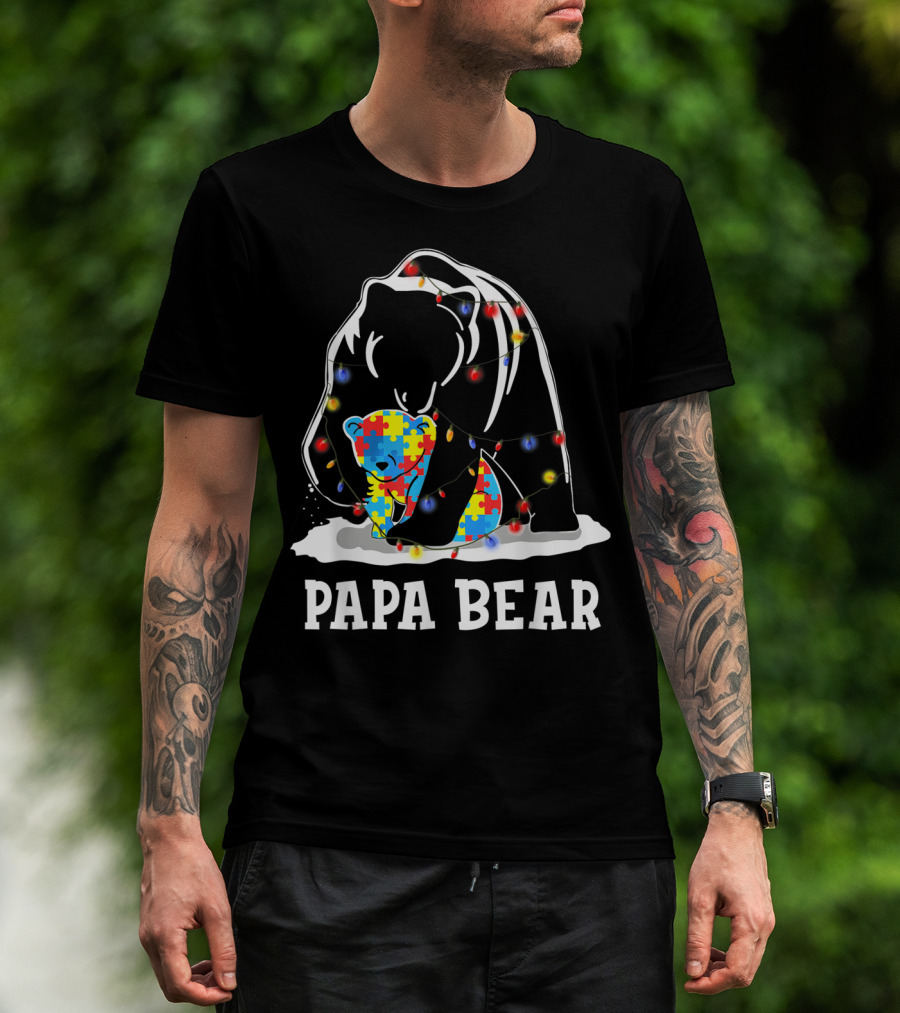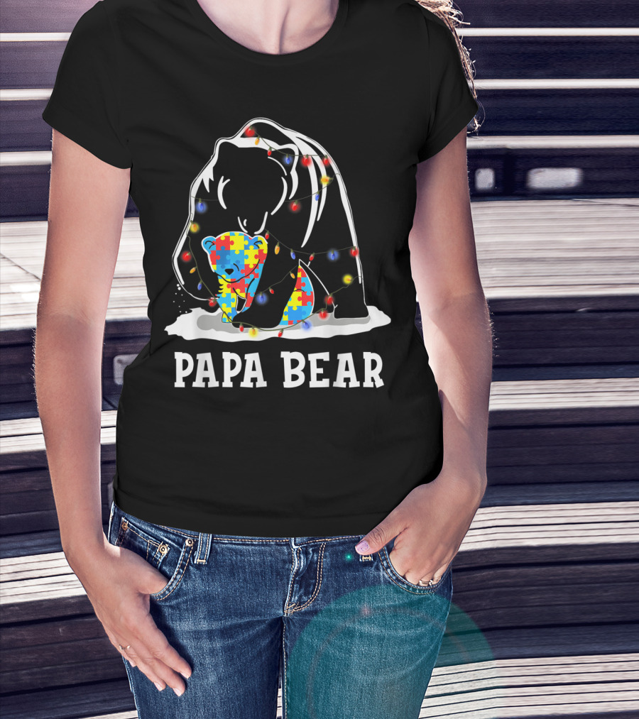 Papa Bear Autism Awareness Puzzle Piece Lights T-Shirt