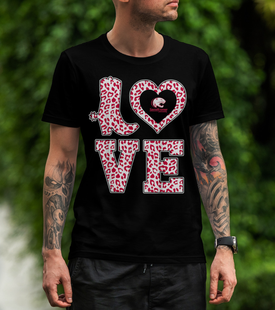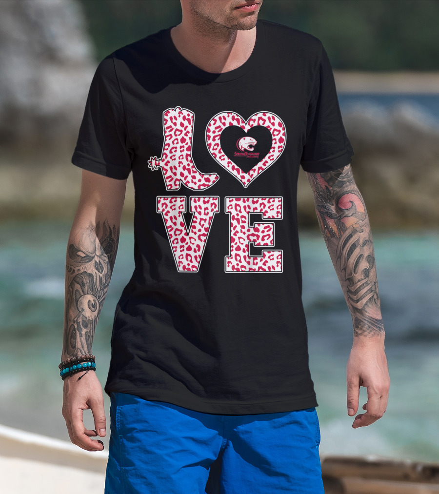 South Alabama Jaguars Leopard Print Love Logo Graduation T-Shirt