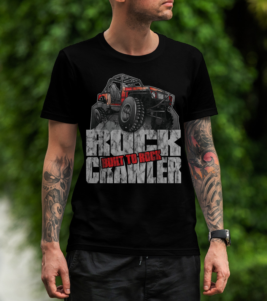 The Rock Crawler Built to Rock Off Road Four Wheel Drive T-shirt is designed for everyday wear and a consistent fit. Fabric is pre-shrunk ring-spun cotton with durable stitching. See the size chart below for exact measurements.
