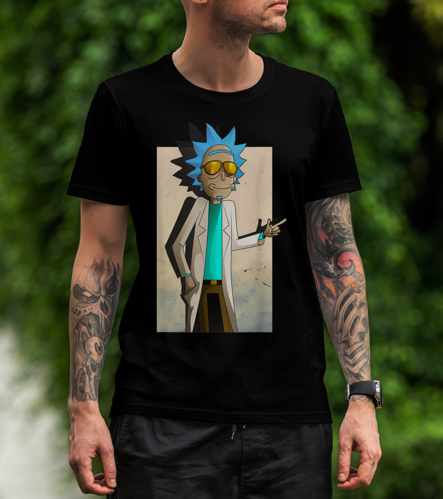 The Rick and Morty Cool Rick Ricklantis Golden Sunglasses White Lab Coat T-shirt is designed for everyday wear and a consistent fit. Fabric is pre-shrunk ring-spun cotton with durable stitching. See the size chart below for exact measurements.