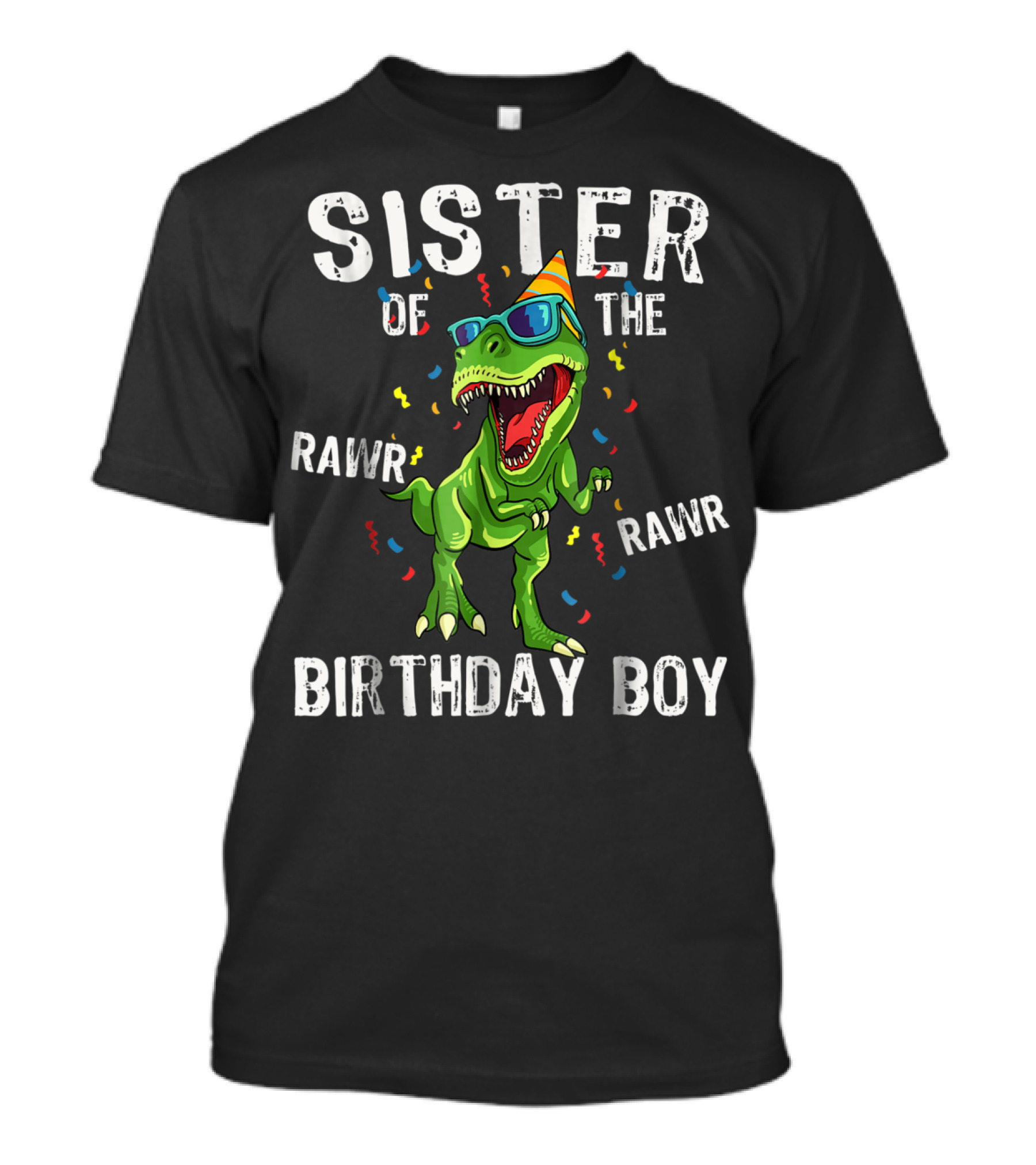 The Sister Of The RAWR Birthday Boy Funny Dino Party Hat Sunglasses T-shirt is designed for everyday wear and a consistent fit. Fabric is pre-shrunk ring-spun cotton with durable stitching. See the size chart below for exact measurements.