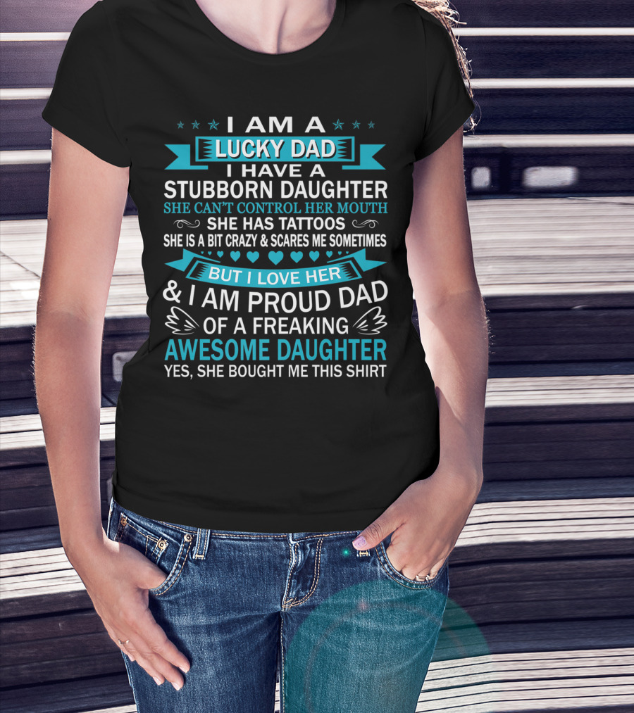 I Am A Lucky Dad I Have A Stubborn Daughter She Can't Control Her Mouth She Has Tattoos But I Love Her And I Am Proud Dad Of A Freaking Awesome Daughter T-Shirt