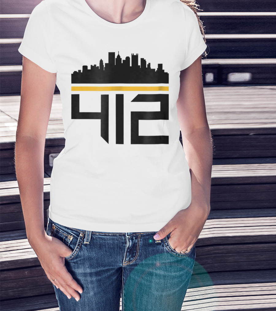 Pittsburgh Skyline 412 Steel City Black And Gold T-Shirt