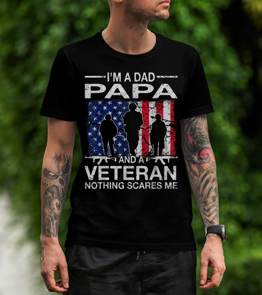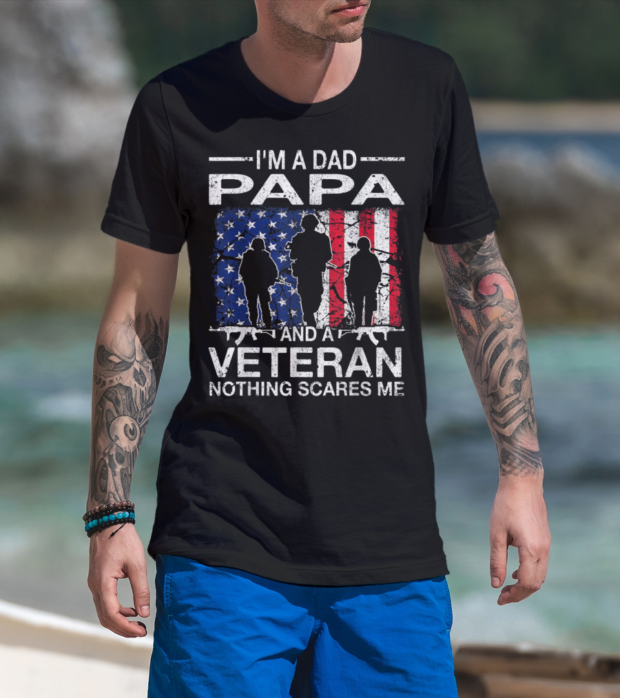 I'M A DAD PAPA AND A VETERAN NOTHING SCARES ME T-Shirt