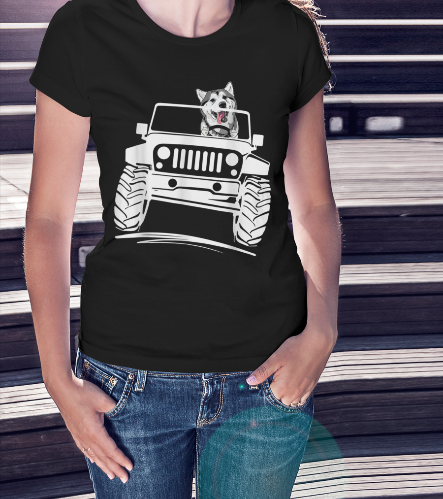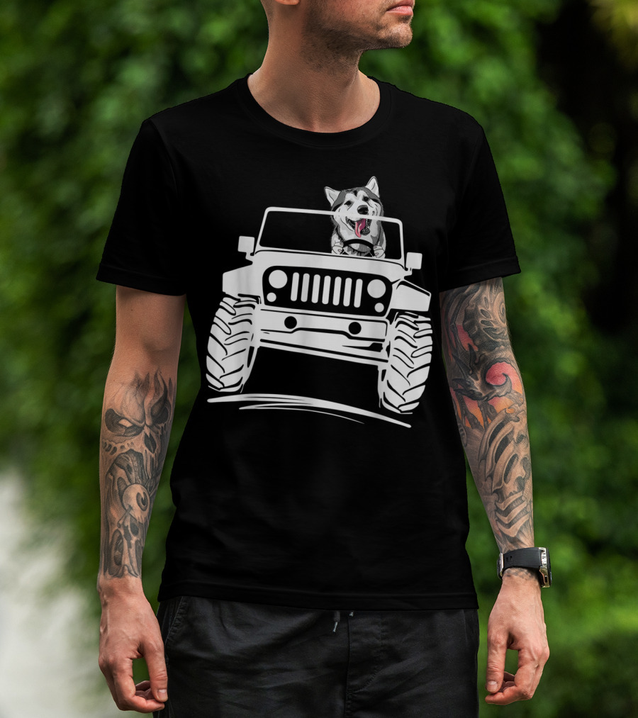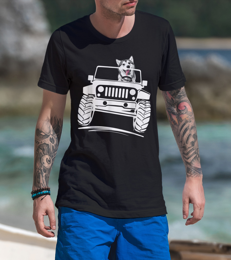 Siberian Husky Off-Road Adventure Jeep Enthusiasts T-Shirt