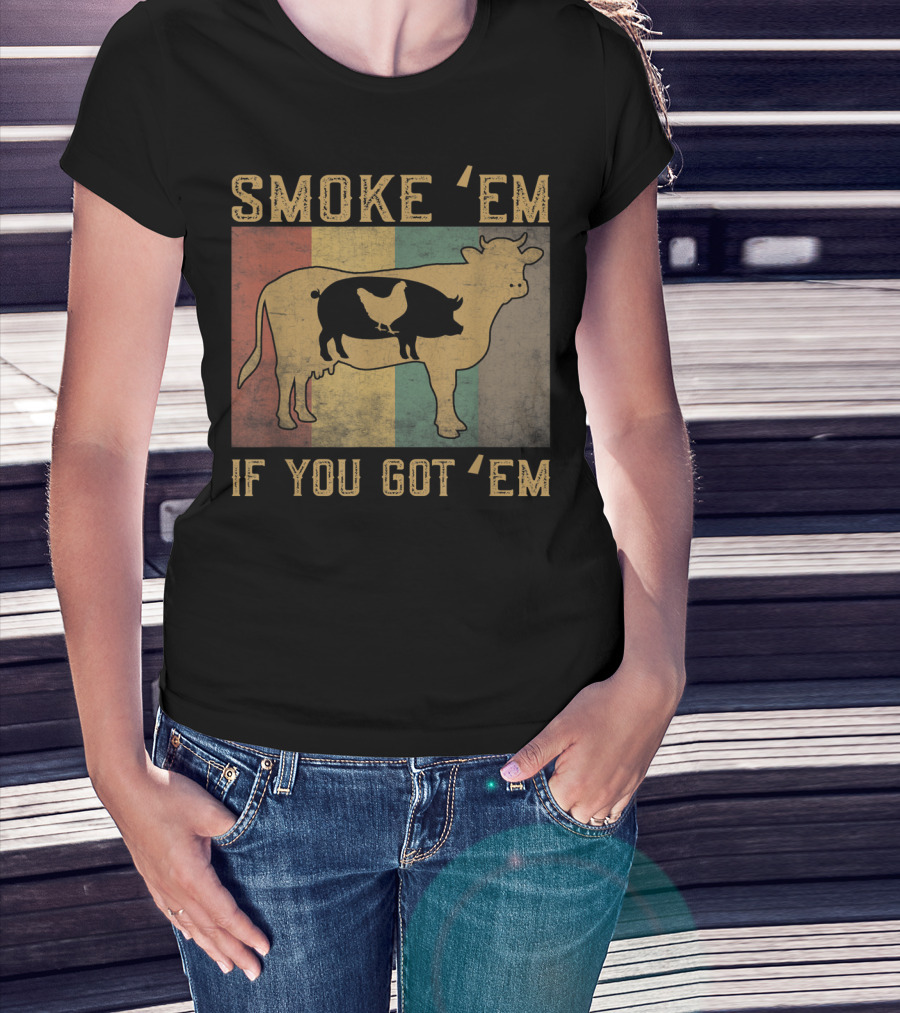 Smoke 'Em If You Got 'Em BBQ Grilling Cow Pig Chicken Retro T-Shirt