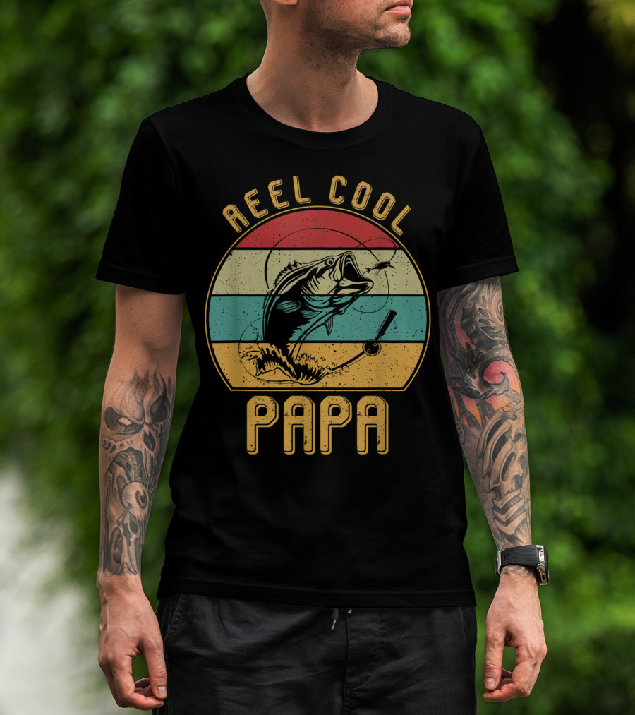 Reel Cool Papa Fishing Father's Day Retro Striped T-Shirt