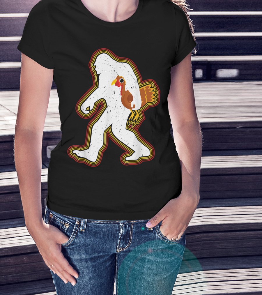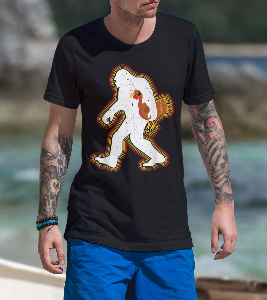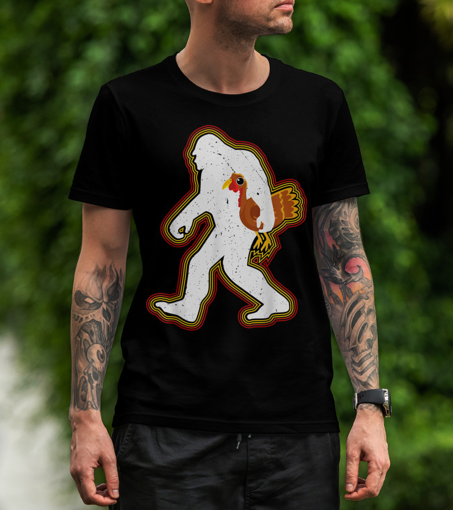 Thanksgiving Bigfoot Silhouette With Turkey T-Shirt